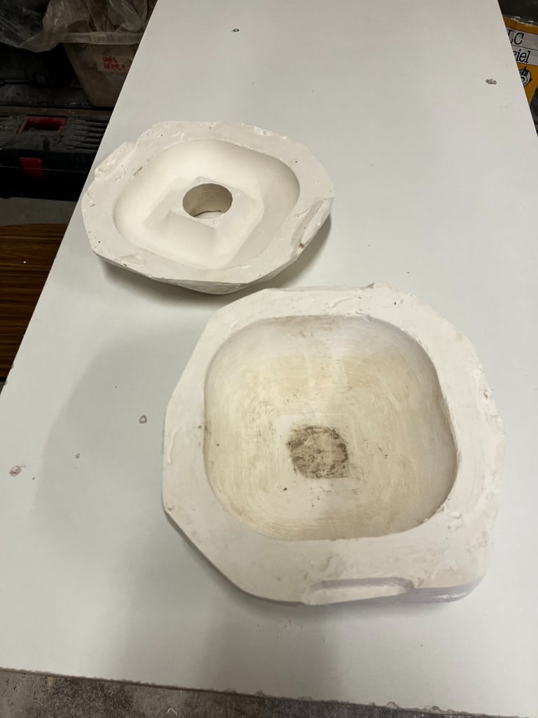 Enceinte imprime en 3D pour faire un moule en platre, puis on coule de la terre pour obtenir un enceinte en ceramique, en grès plus precisement